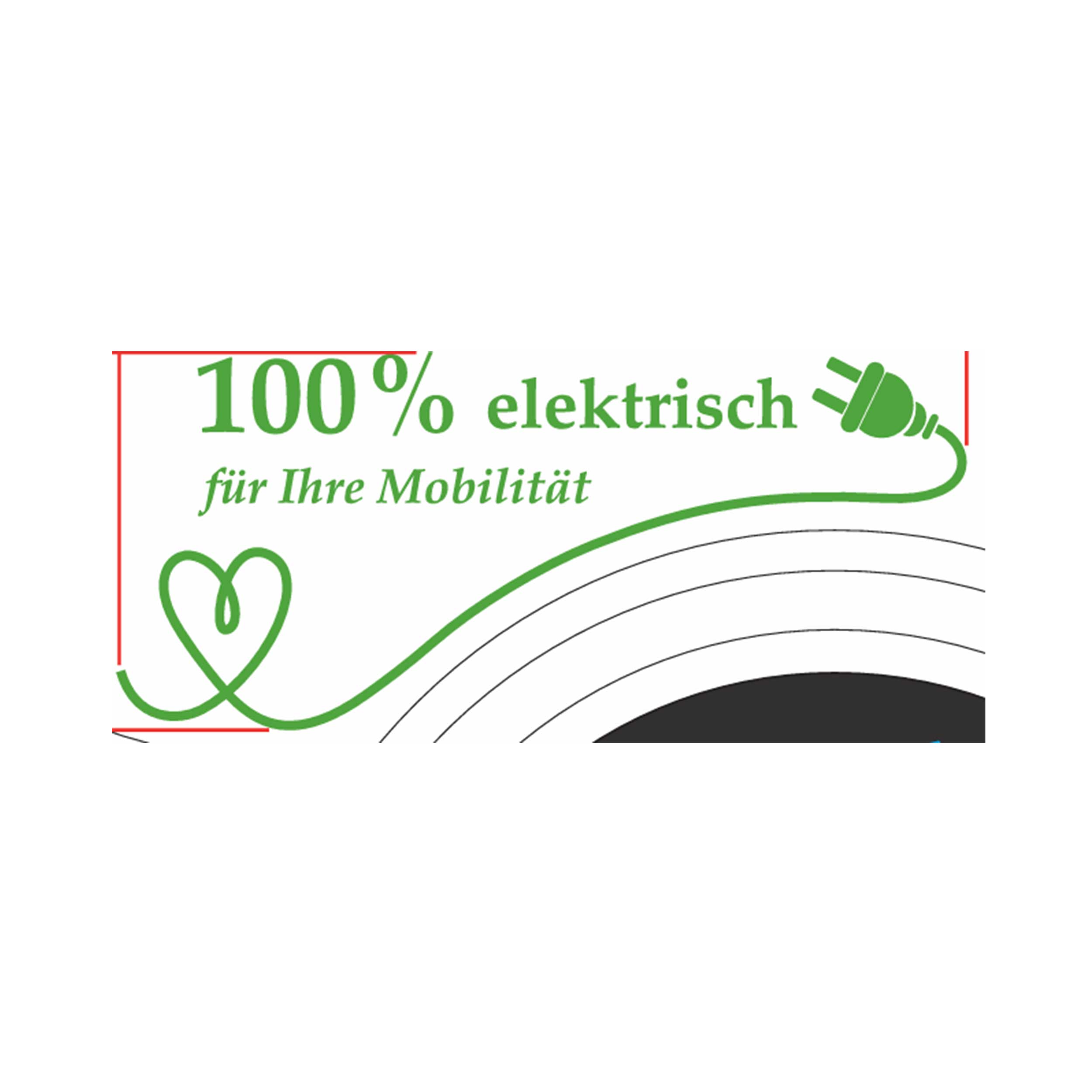 - Motiv: grünes Kabel zu einem Herz geschwungen (im Herz "100% ELEKTRISCH), mit Steckersymbol