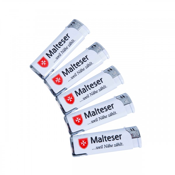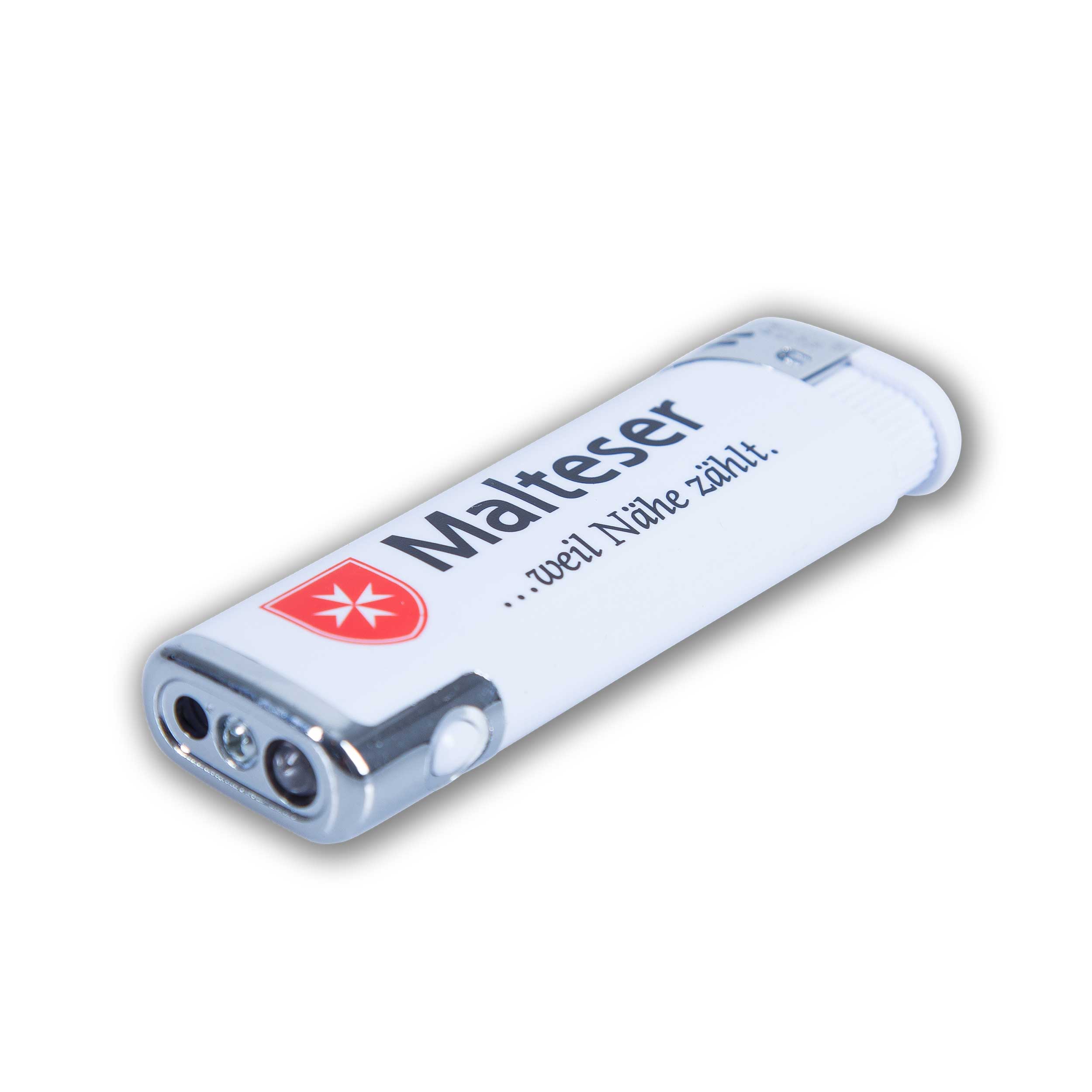 • Malteser-Feuerzeug, weiß, mit LED-Licht, VA